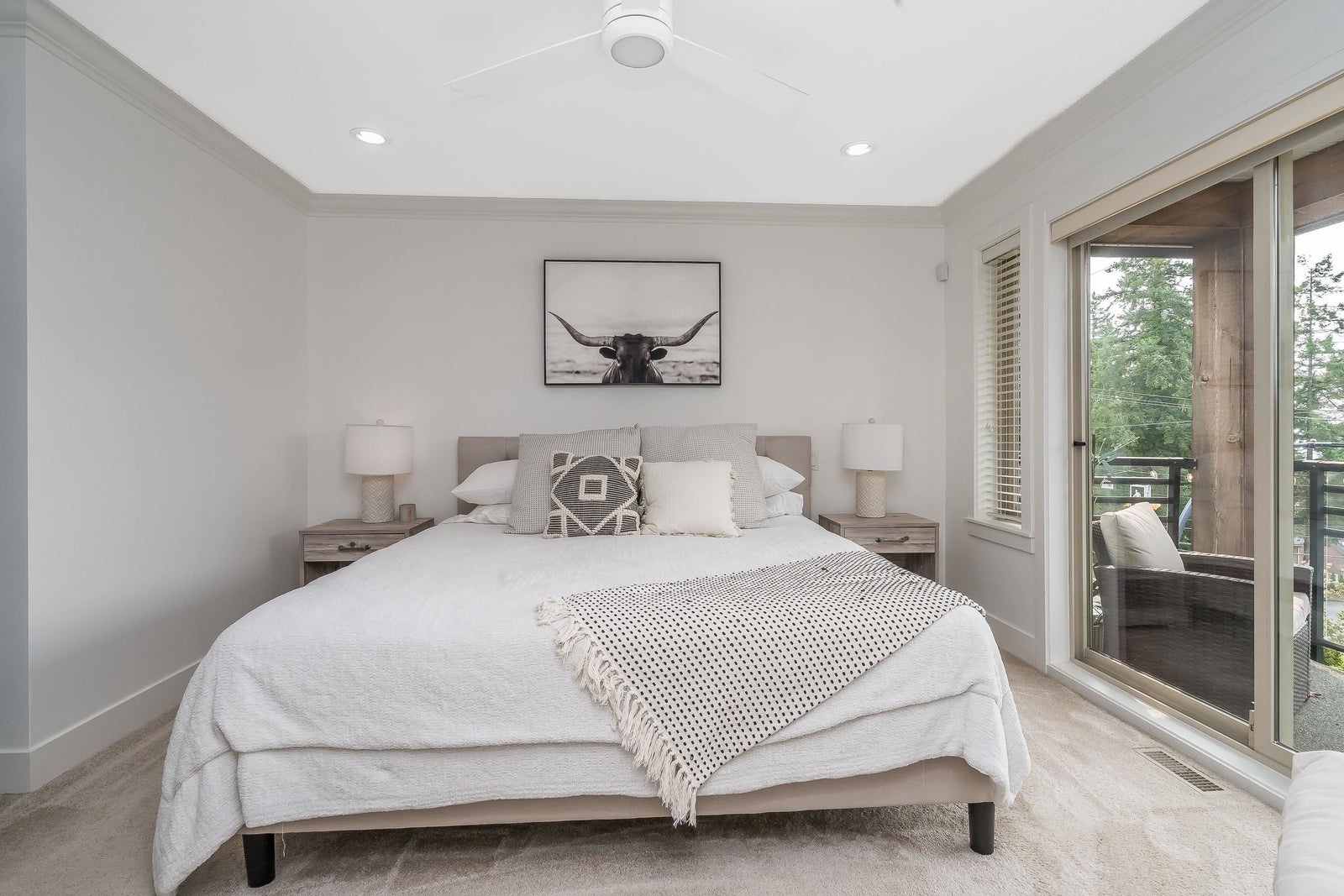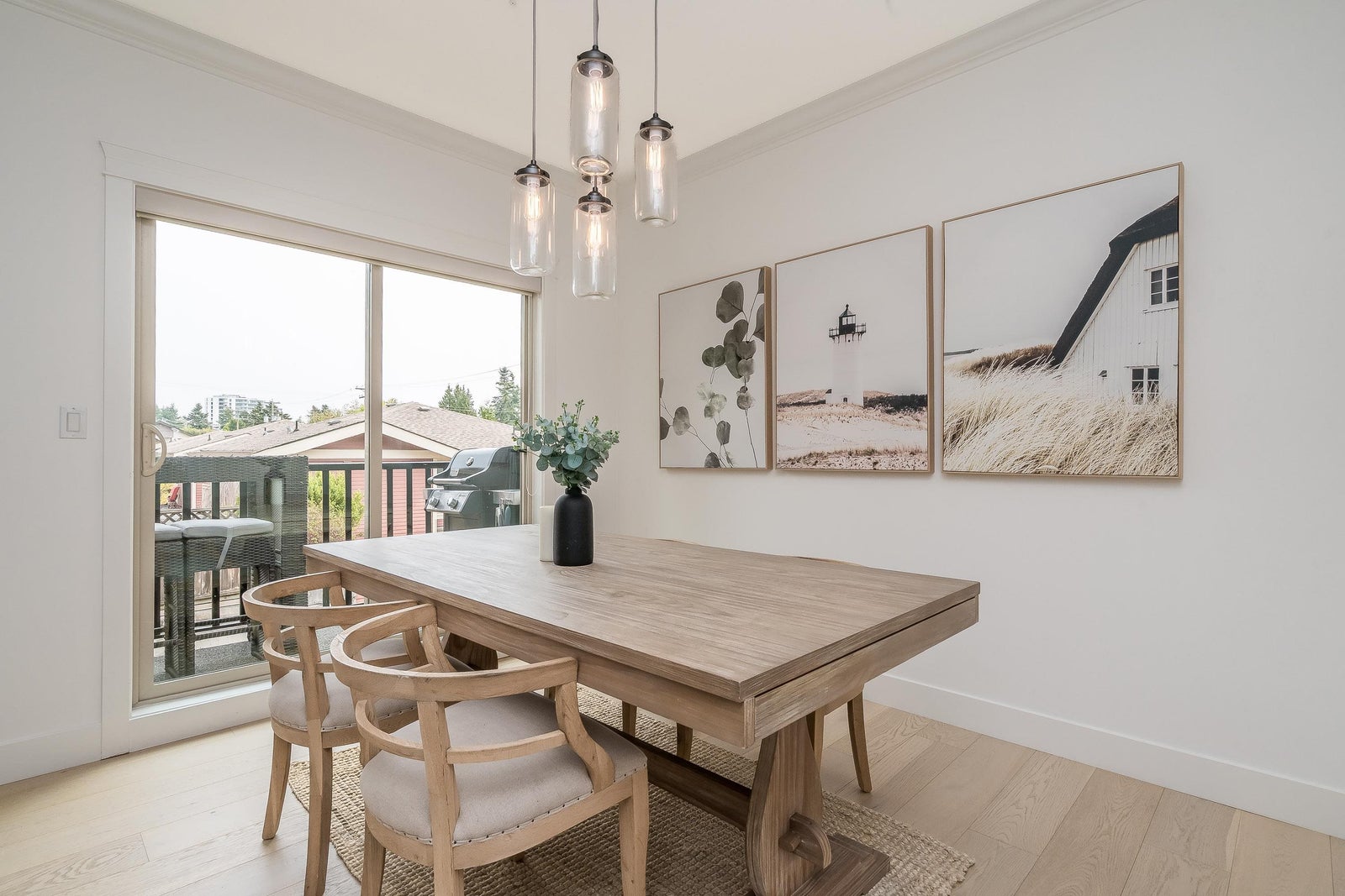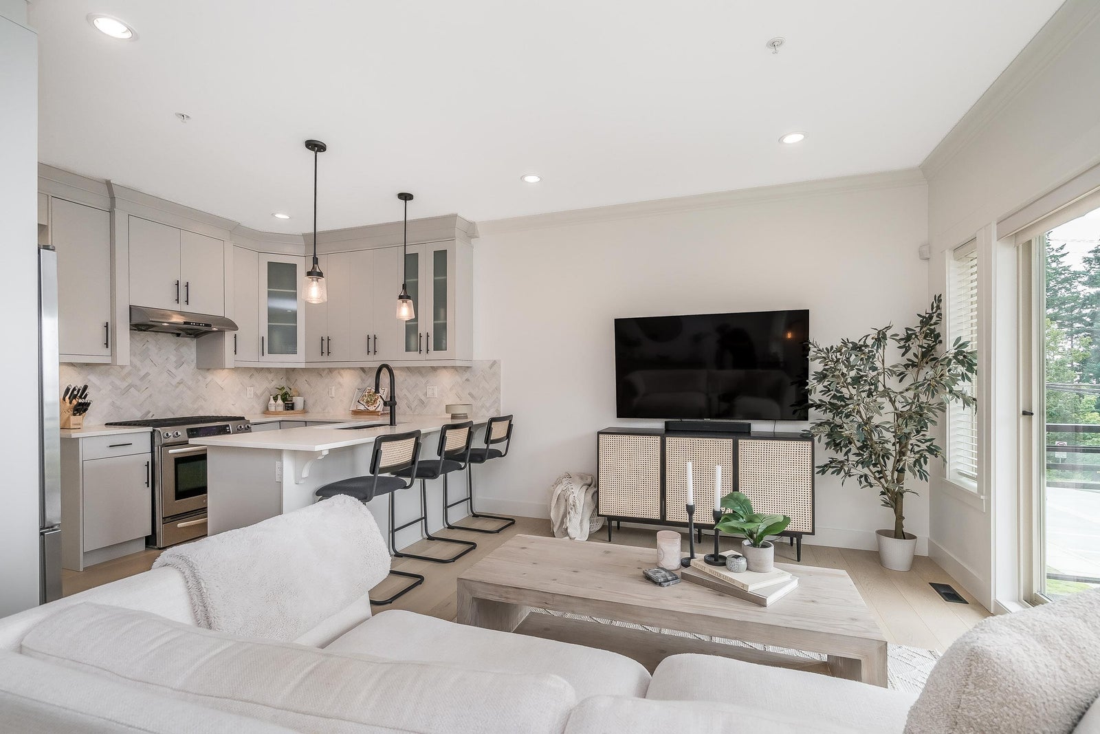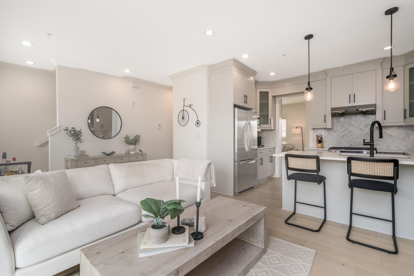 Rarely available in the Avonlea development! This substantially renovated 4-bed, 3-bath townhome offers stunning ocean views from both the main living area and the primary bedroom. Set within an exclusive 5-unit community, it features a private back-alley entrance to a double garage, modern upgrades throughout, and a bright open-concept layout with two spacious living areas on the main floor. With three balconies, including a top deck off the master showcasing beautiful ocean views, this home is steps from White Rock Beach, Save-On-Foods, Thrifty Foods, Semiahmoo Mall, and many more amenities, also within walking distance to Semiahmoo Secondary and HT Thrift Elementary, combining luxury and convenience at its best.