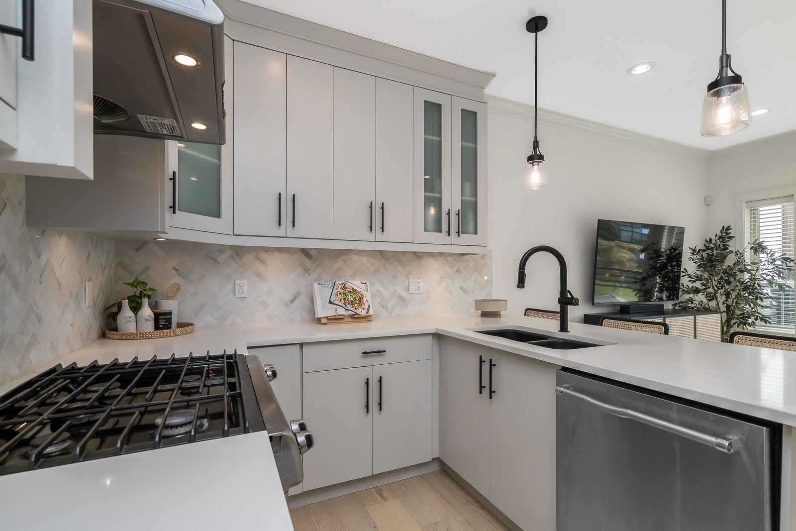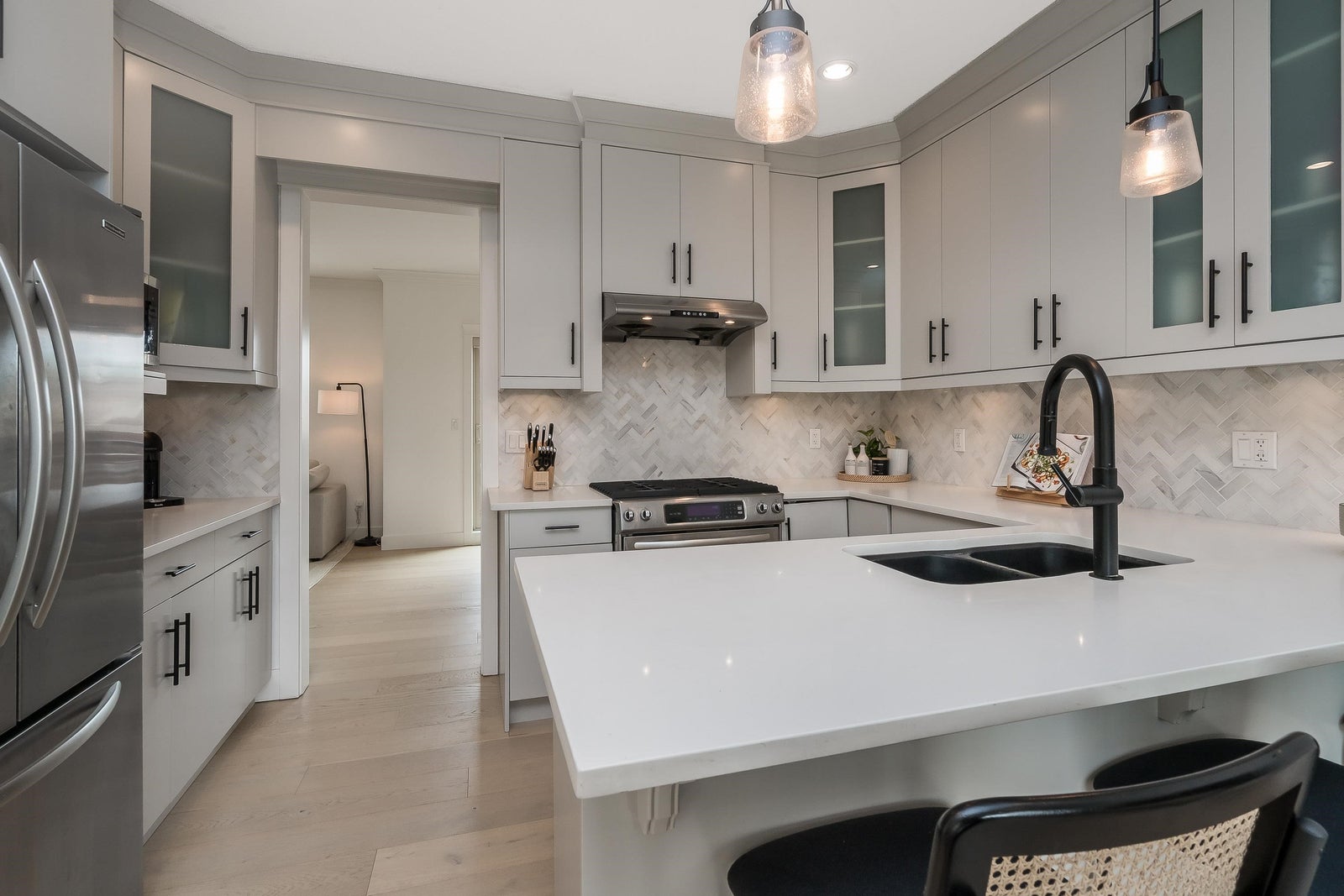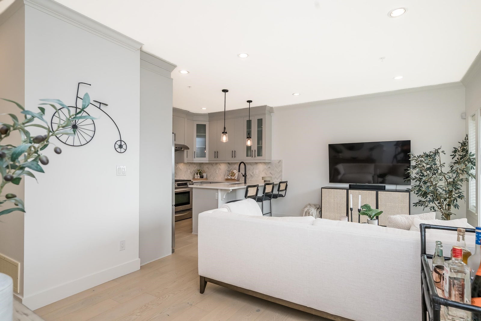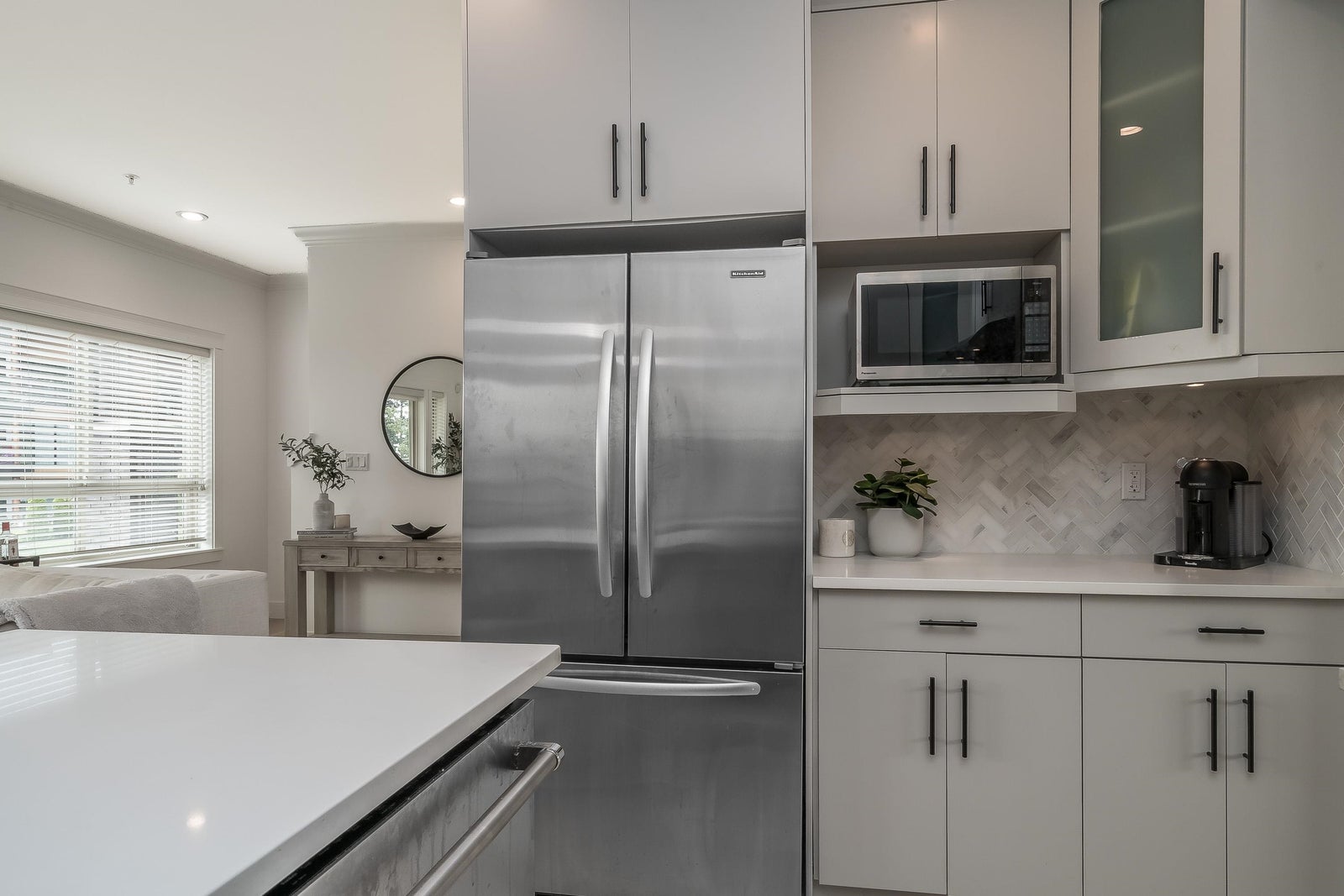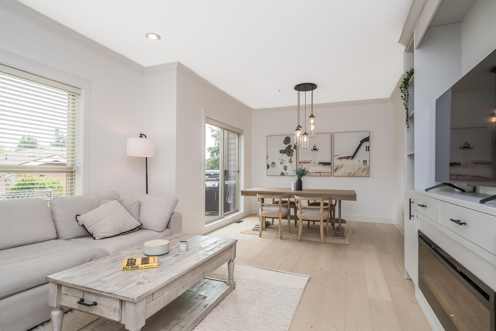 Rarely available in the Avonlea development! This substantially renovated 4-bed, 3-bath townhome offers stunning ocean views from both the main living area and the primary bedroom. Set within an exclusive 5-unit community, it features a private back-alley entrance to a double garage, modern upgrades throughout, and a bright open-concept layout with two spacious living areas on the main floor. With three balconies, including a top deck off the master showcasing beautiful ocean views, this home is steps from White Rock Beach, Save-On-Foods, Thrifty Foods, Semiahmoo Mall, and many more amenities, also within walking distance to Semiahmoo Secondary and HT Thrift Elementary, combining luxury and convenience at its best.